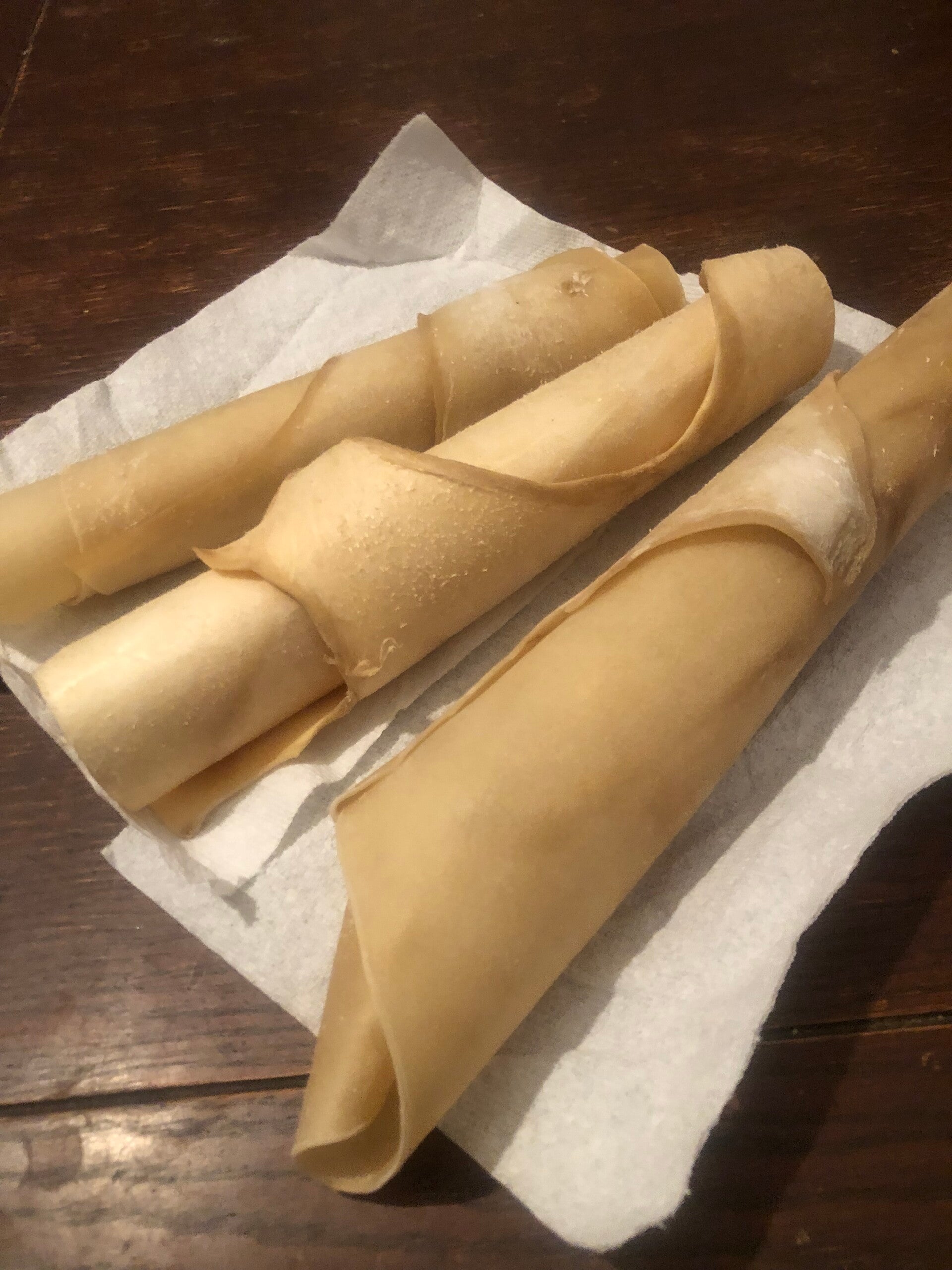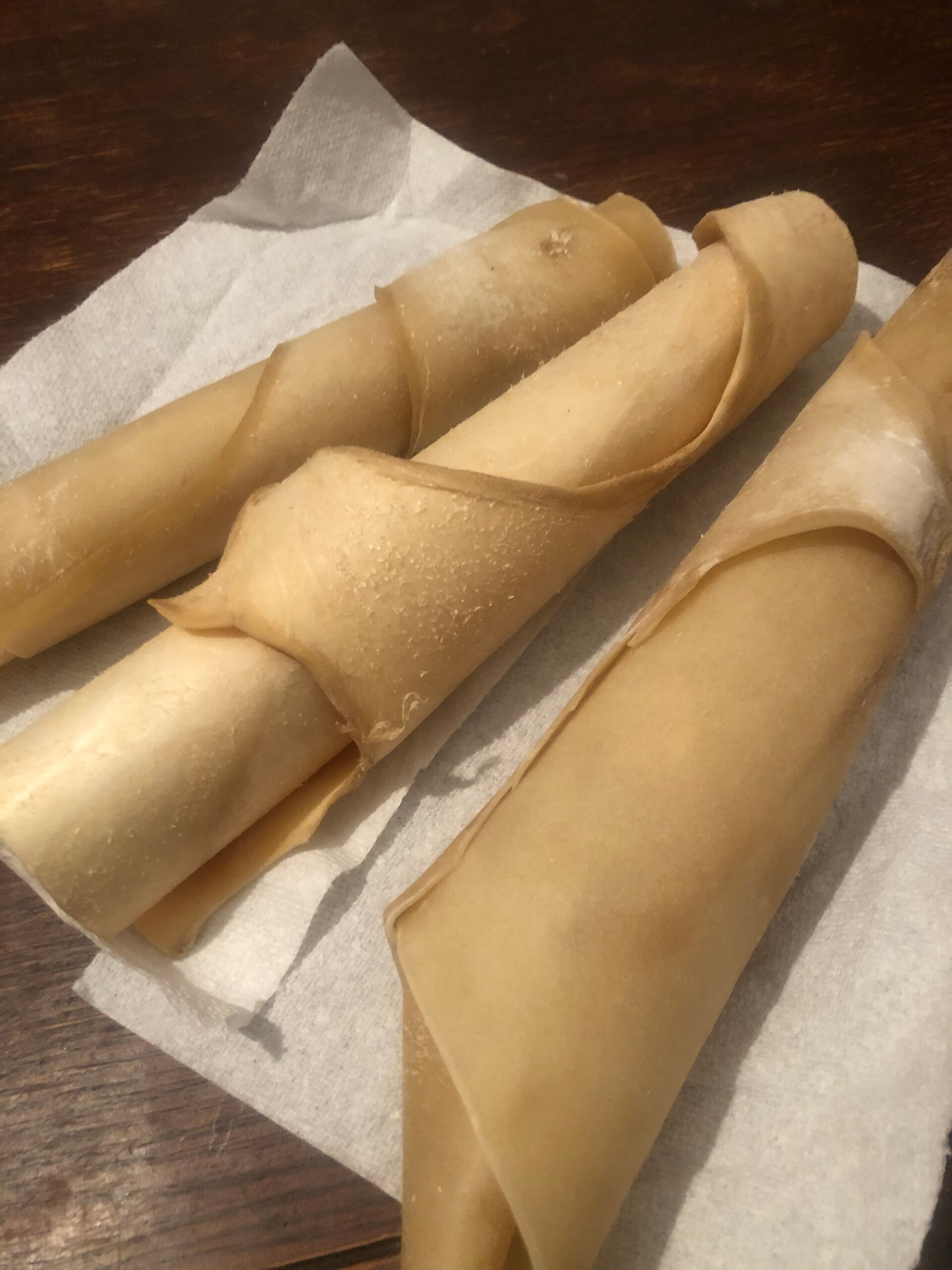 - Deer rawhide rolls - these are thinner, easier to chew through than the other types of hides, and are best for small to medium sized dogs who are NOT aggressive chewers.